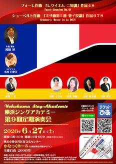 横浜の実力派合唱団演奏会。フォーレ:レクイエム・シューベルト:ミサ5番