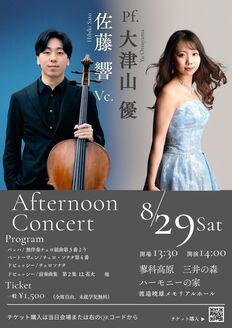豊かな森の中のホールで、チェロとピアノの音に包まれる午後