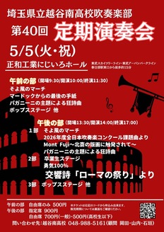私たち所沢北吹奏楽団は、1990年創立の吹奏楽団です。 小さなお子様からご年配の方までお楽しみいただける演奏会を開催しています。