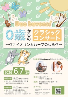 【6/7】0歳からのクラシックコンサート 〜ヴァイオリンとハープのしらべ〜【2026】