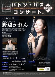 バトンパスコンサート®東京公演vol.75 野辺 かれん(cl), 黒澤 結芽(pf)