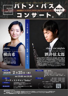 バトンパスコンサート®東京公演vol.73 酒井 弦太郎(Ob),横山 希(pf)