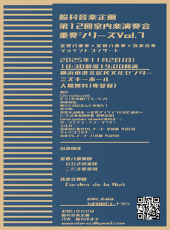 少数精鋭による室内楽をお届け。世界初演もあります!!