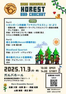 指揮者: 竹内聡 / 電子オルガン: 大学院電子オルガンコース / サクソフォーン: 大城 そのか / サクソフォーン: 坂井 開 / トランペット: 小松 美羽