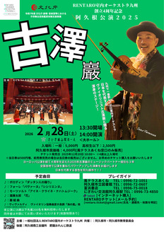 古澤巖×RENTARO室内オーケストラ九州 阿久根公演2026【文化庁こども招待専用】