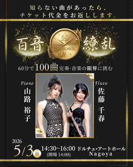 【1曲でも知らない曲があれば、チケット代をお返しします】百音繚乱〜演奏時間60分・デュオ100曲完奏コンサート