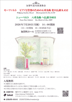 モーツァルトのピアノ五重奏曲、シューベルトの八重奏曲を演奏します。